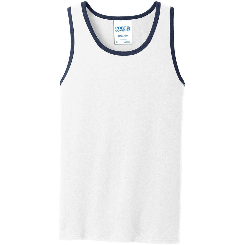 Port & Company Men's White/Navy Core Cotton Tank Top