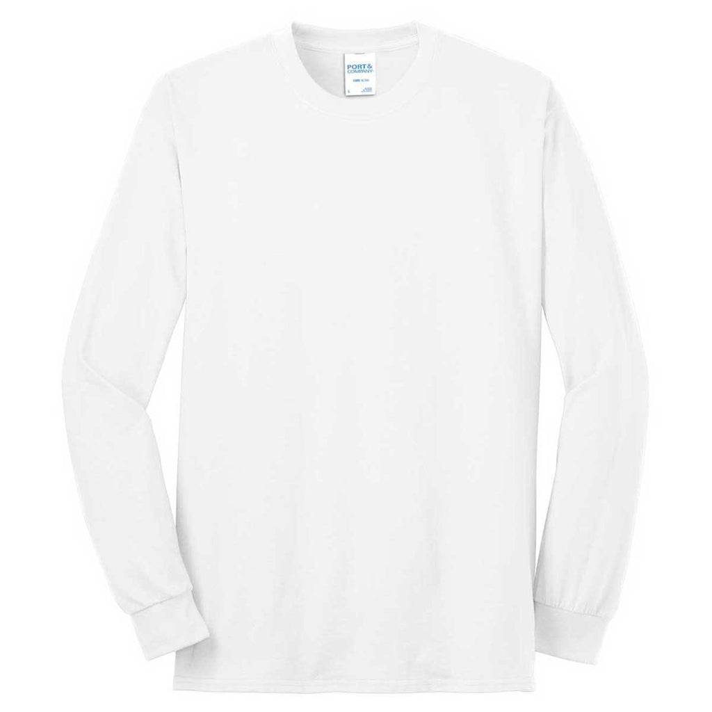 You can layer it in the occasionally chilly weather, and then wear it as stand-alone in warmer months. A shirt that keeps on giving. Comfortable long sleeves and breathable all-cotton fabric make this Port & Company Men's White Tall Long Sleeve Core Blend Tee a flawless cold weather find. Emblazon this long sleeve, with your company's logo or message to gift it to your clients as a corporate give-away or a summer uniform staple for your employees. Either way, it will help your company or organization stand out and create an impactful brand identity.Highlights