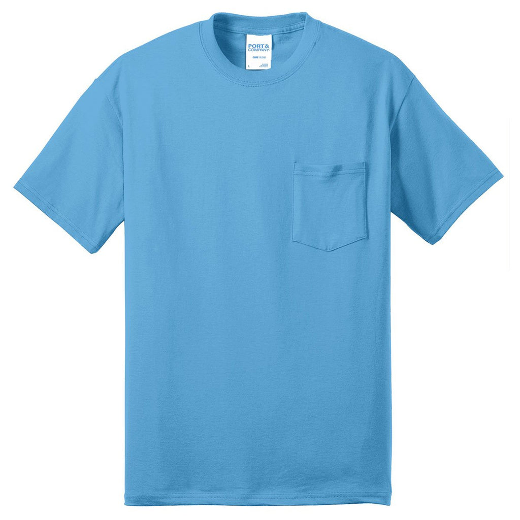 Port & Company Men's Aquatic Blue Core Blend Pocket Tee