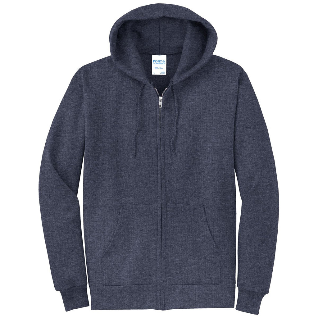 Port & Company Men's Heather Navy Core Fleece Full-Zip Hooded Sweatshirt