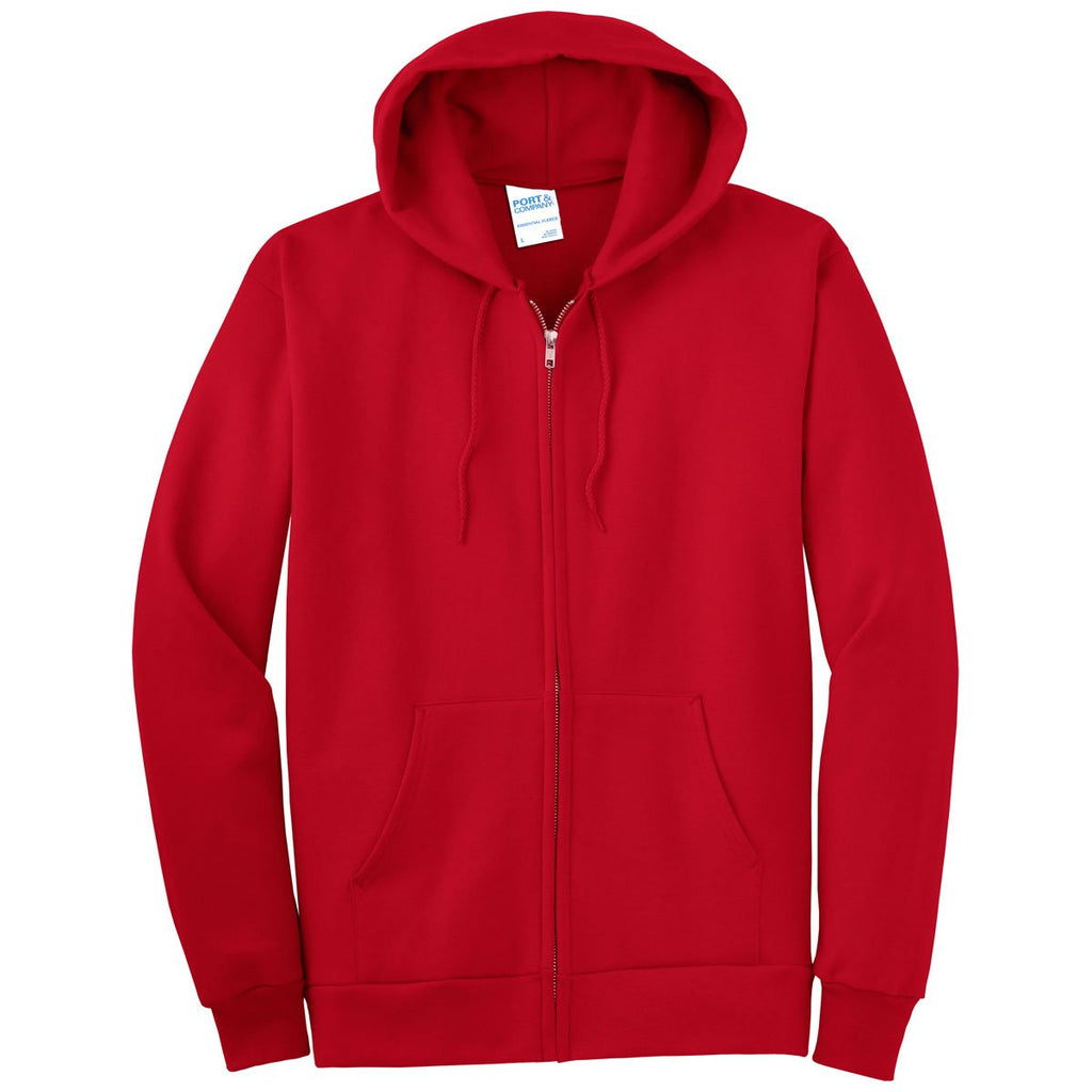 Port & Company Men's Red Essential Fleece Full-Zip Hooded Sweatshirt