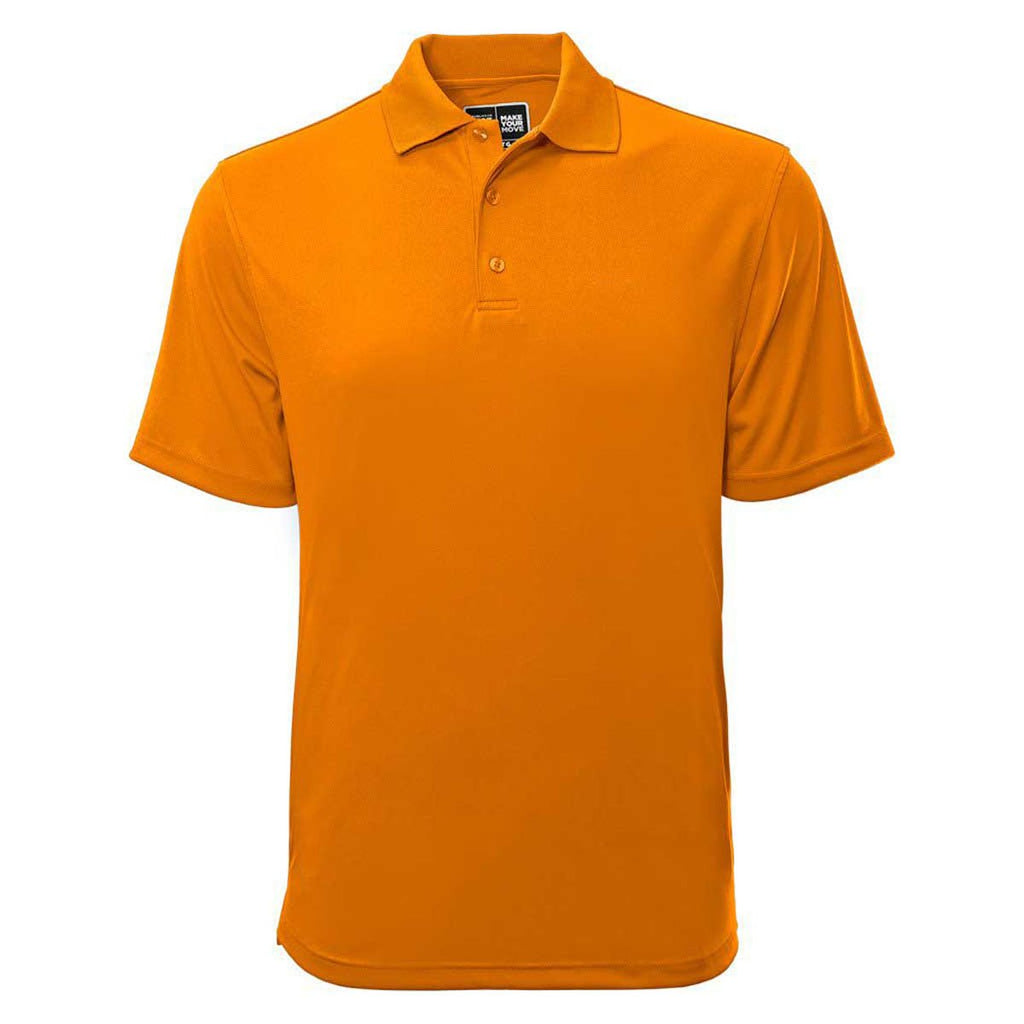 The company logoed Levelwear Men's Gold Helium II Polo contains 100% polyester knit interlock fabric that ensures long lasting durability. Mechanical stretching of the tough fabric allows you to move your body into different positions on the golf course and softball field. Anti-static properties take the shock out of participating in corporate sponsored athletic competitions. The stylish polo also works as professional company apparel you wear during business trips. Attach a custom logo on the large imprint area to attract the attention of the people you pass by at crowded airport terminals and meet at industry trade shows.Highlights