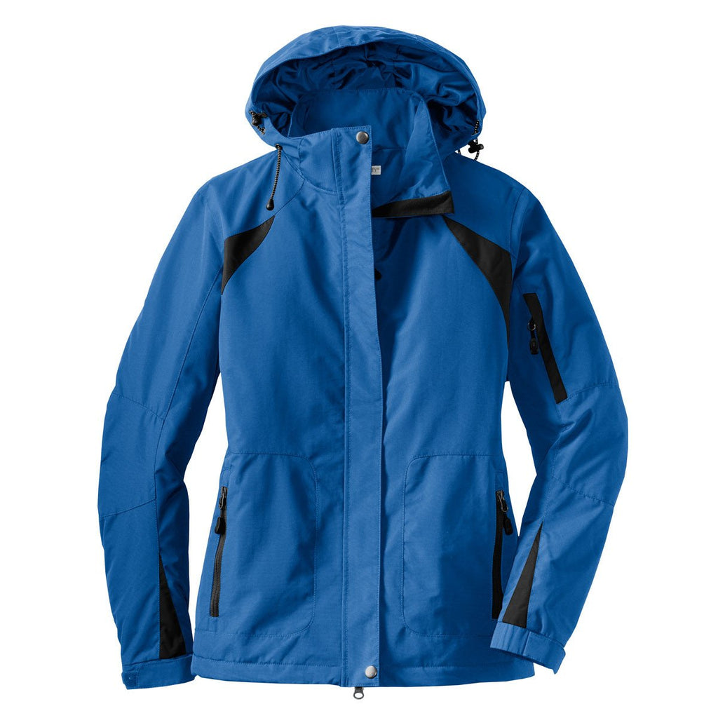 Rainy days? What rainy days? You don't have to let the weather dictate your mood so long as you have a jacket that keeps the weather conveniently off your skin. If that's what you're looking for, allow us to introduce you to the Port Authority Women's Snorkel Blue/Black All Season II Jacket. This jacket is ready for a battle with the weather, featuring a 100% Taslan nylon shell and 100% polyester sleeve lining that makes it easy to put on and take off. The 3000MM fabric waterproof rating is a fancy number that basically says, this jacket will keep you dry. If you want to keep your employees dry in the rainy season, add your own company logo to this jacket and make them a uniform they'll be proud and comfortable to wear.Corresponding Men's Style: Port Authority Men's Snorkel Blue/Black All Season II Jacket
