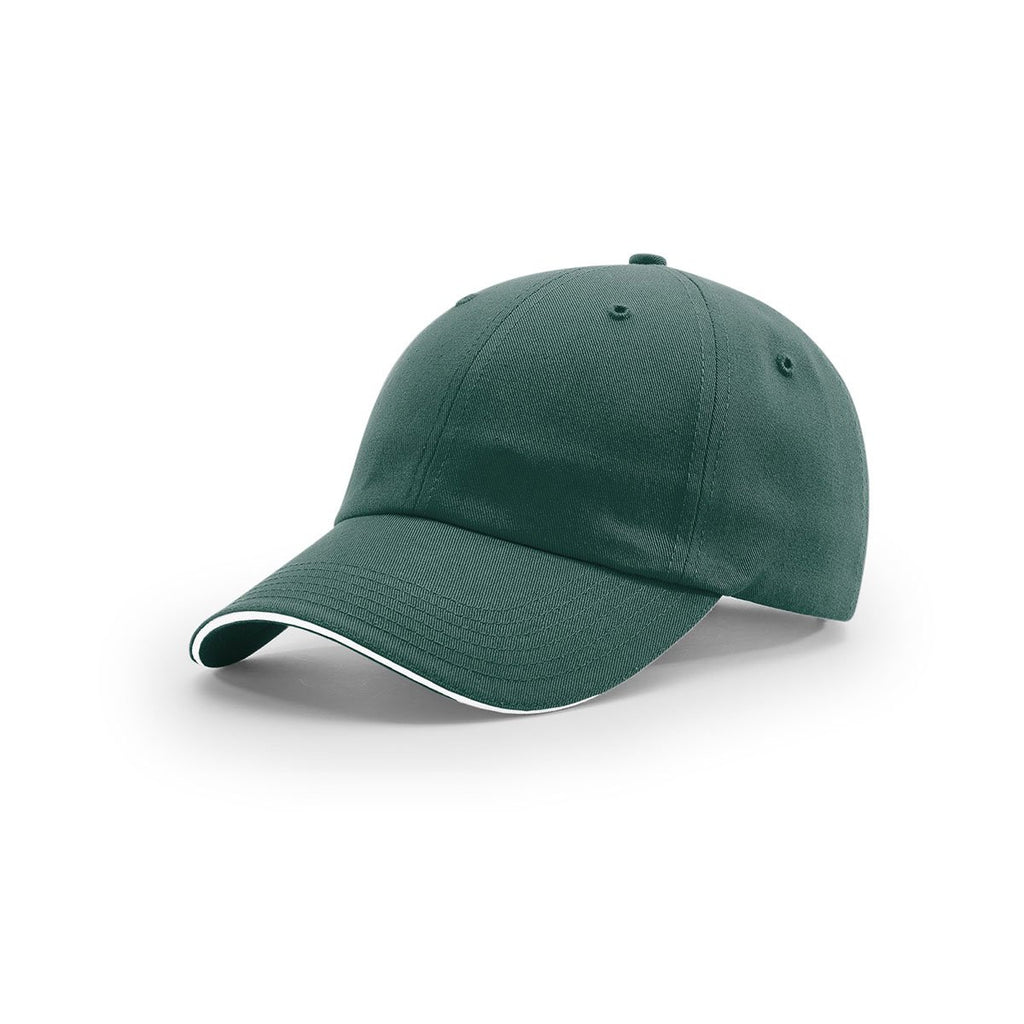 The Richardson Dark Green/White R-Series Unstructured Sandwich Visor Cap embroidered with your logo is a great value cap. It's made of a breathable blend and accented with a contrasting trim at its sandwich visor. Equipped with adjustable backstrap closure for custom comfort. Personalized caps offer great business branding opportunities for your brand and products. Available in a broad range of colors.Highlights