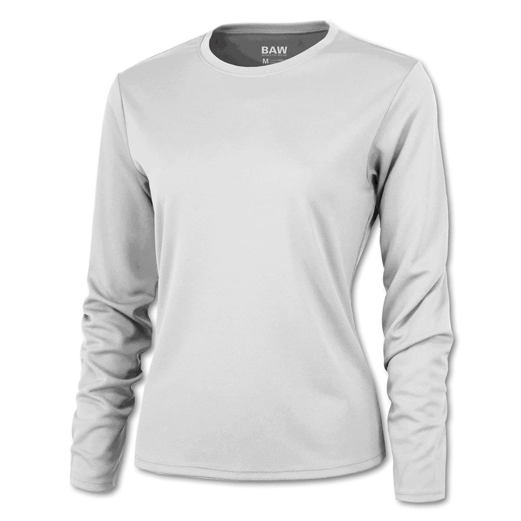 BAW Women's White Loose Fit Cool Tek Long Sleeve T-Shirt