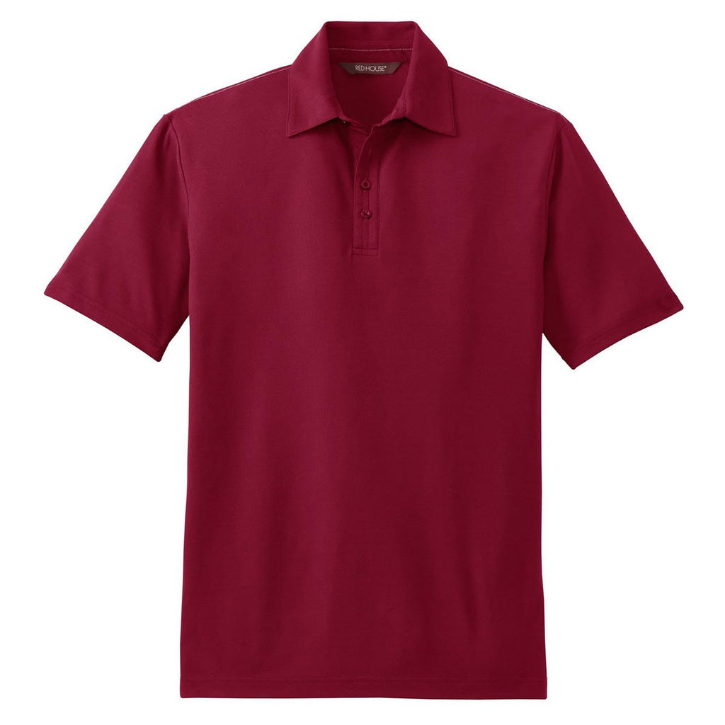 Perhaps the Polo is among the Top Five desired shirts by men. The gentlemen you give this Red House Men's Bordeaux Red Contrast Stitch Performance Pique Polo to will welcome it to their wardrobe and proudly wear your custom logo. There is no more versatile shirt for work and play. This particular fabric is desirable because of its moisture wicking properties. Contrasting clay green chain stitching is added inside the neck, across the shoulders, and down the side seams. White chain stitching is on the solid white Polo. Shirt features contrast taping inside side vents, self-fabric collar, four-button placket, and open hem sleeves. Sizes are XS to 4XL. Select from Bermuda purple, black, Bordeaux red, clay green, insignia blue, vine green, and white.Highlights