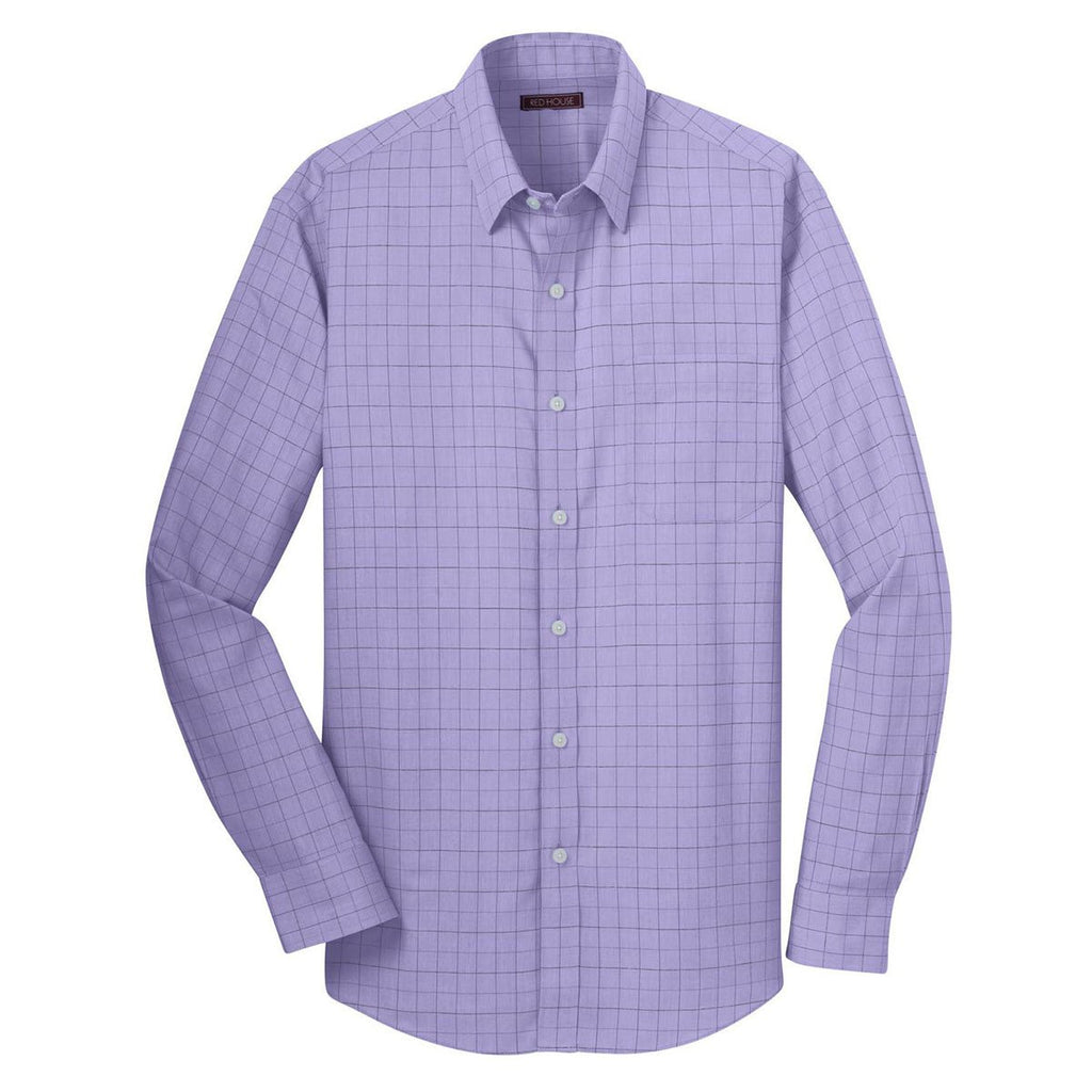 Just because your company wants its custom logo on a shirt that can be given to employees, customers and potential customers does not mean it has to be plain. You can be seen as fashion-forward when you have your logo on this Red House Men's Thistle Purple Windowpane Plaid Non-Iron Shirt. Made from wrinkle resistant cotton, this shirt features a tone-on-tone windowpane pattern. It has a versatile collar that can be worn open or buttoned down, a left chest notched pocket, and adjustable two-button notched cuffs. The shirt is available in sizes XS to 4 XL. Choose your favorite windowpane color from blue, dove grey, and thistle purple.Corresponding Women's Style: Red House Women's Thistle Purple Windowpane Plaid Non-Iron Shirt