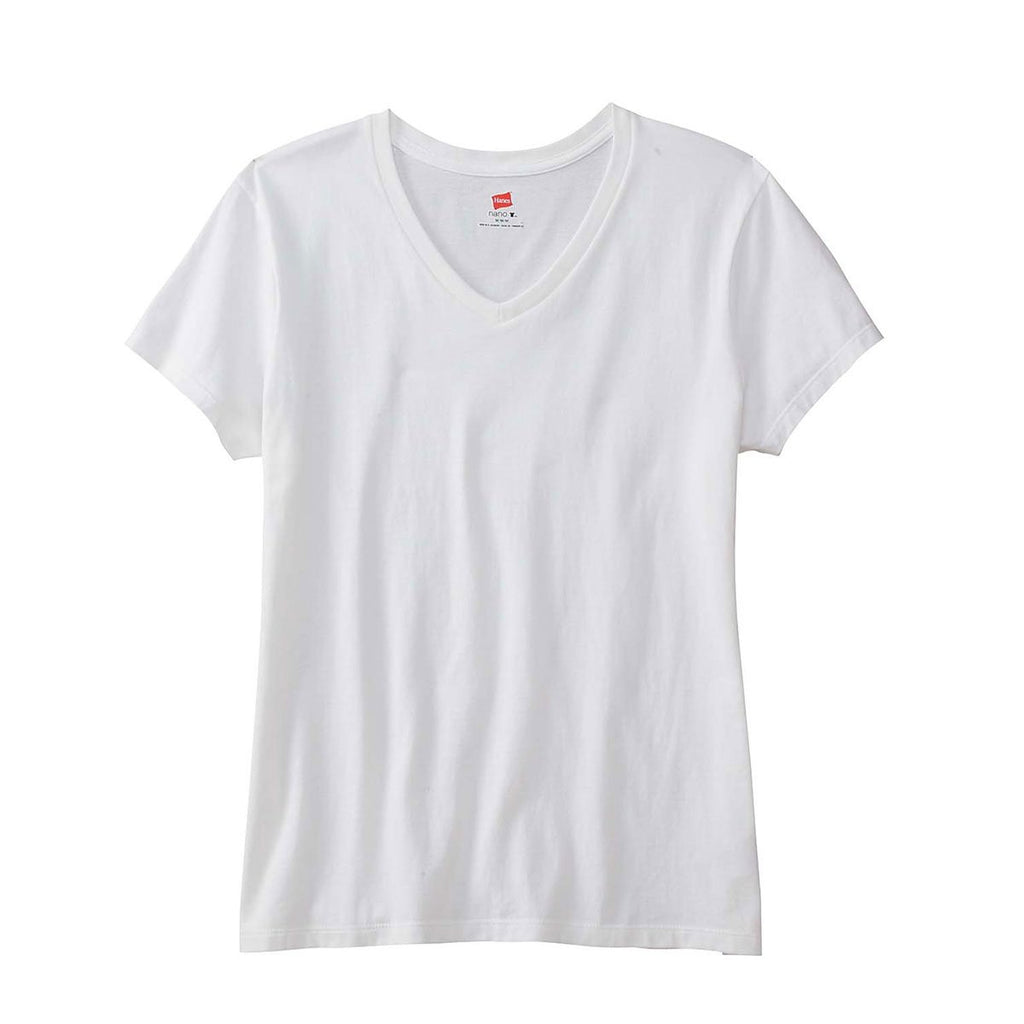 Hanes Women's White 4.5 oz. 100% Ringspun Cotton nano-T V-Neck T-Shirt