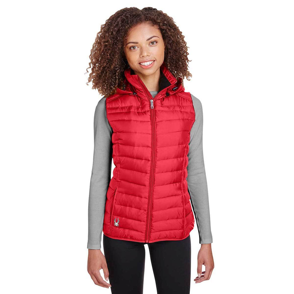 Make a real statement with a custom Spyder Women's Red Supreme Puffer Vest. This gorgeous active fit vest is made of polyester nail head weave fabric for a look that is meant to please. Add a company logo to offer these as end of the year gifts that will serve as go to outdoor wear for those quickly arriving cooler months. Complete with zippered handwarmer pockets that are inset into princess seams, these vests are not only beautiful, but functional for those nights around the bonfire or simply enjoying the great outdoors. Add a corporate embroidery to offer these at a corporate event in which outdoor wear would make a true statement.Corresponding Men's Style: Spyder Men's Red Pelmo Puffer Vest