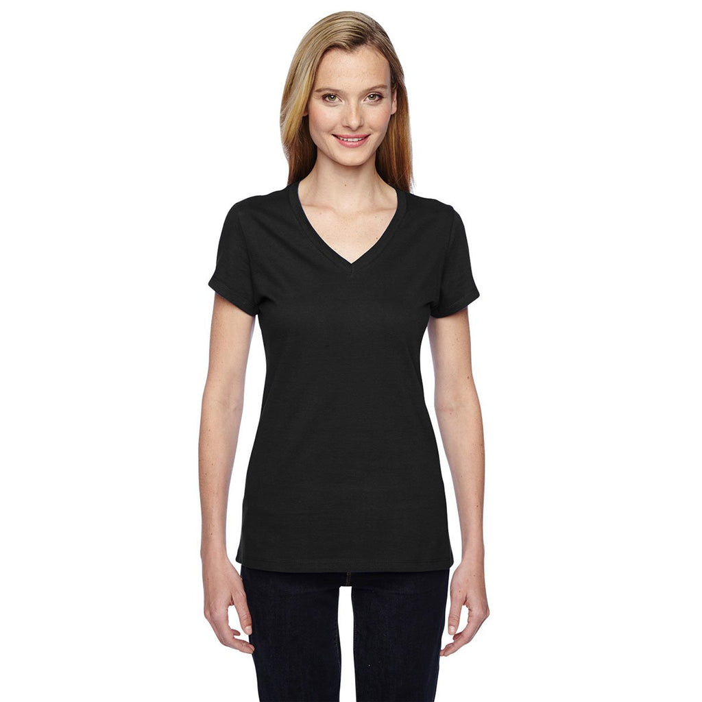 Stick with the comfortable classic in this custom Fruit of the Loom Women's Black 4.7 oz. Sofspun Jersey Junior V-Neck T-Shirt in 12 different colors. Made of 100% cotton these tees are easily customized with your screen print of choice to use as employee apparel alone or pair with a hoodie. The contemporary junior silhouette with mitered V-neck offers a flattering fit for the feminine form. Perfect for golf events or trades shows when you need to look and feel great without limiting movement. Choose your color and logo and order today.Corresponding Men's Style: Fruit of the Loom Men's Black 4.7 oz Sofspun Jersey V-Neck T-Shirt