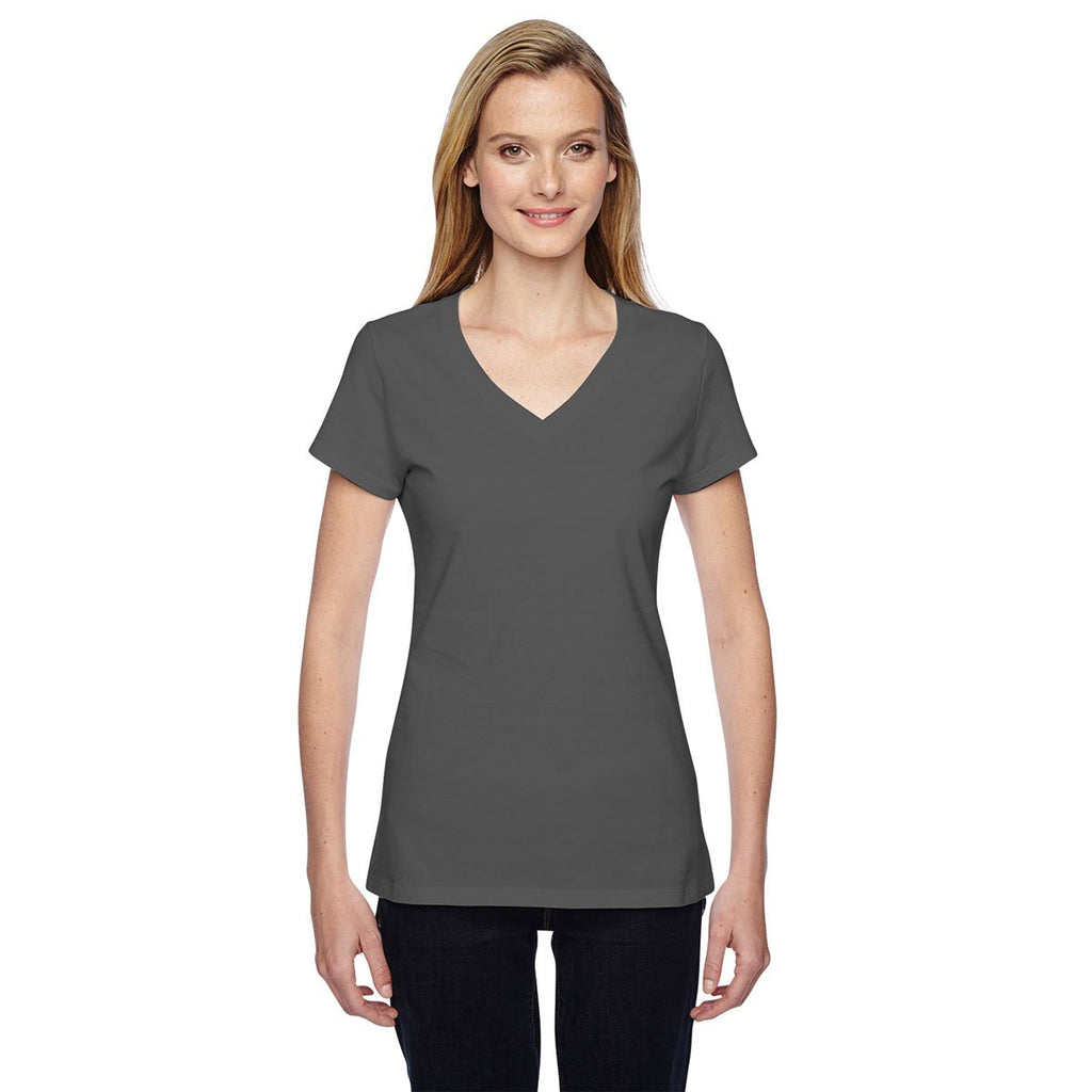 Fruit of the Loom Women's Charcoal Grey 4.7 oz. Sofspun Jersey Junior V-Neck T-Shirt