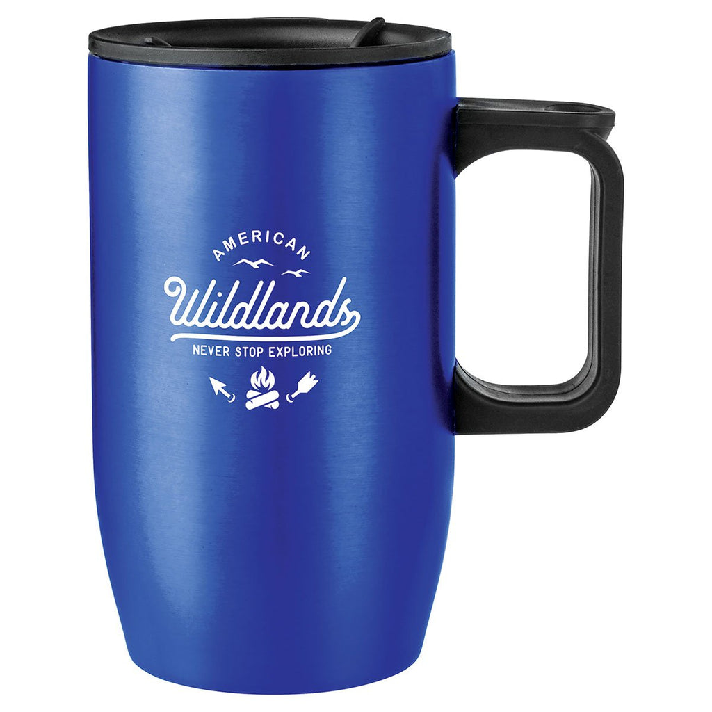 The stainless steel body of the Bullet Blue Terra 14oz Travel Mug makes this immediately noticeable from the crowd. Your custom logo will make it even more intriguing for people to see. The logo will stand out on the bright steel and will be useful for people in the workplace who travel around the country for work purposes.The minimum order for this product is 48 pieces.
