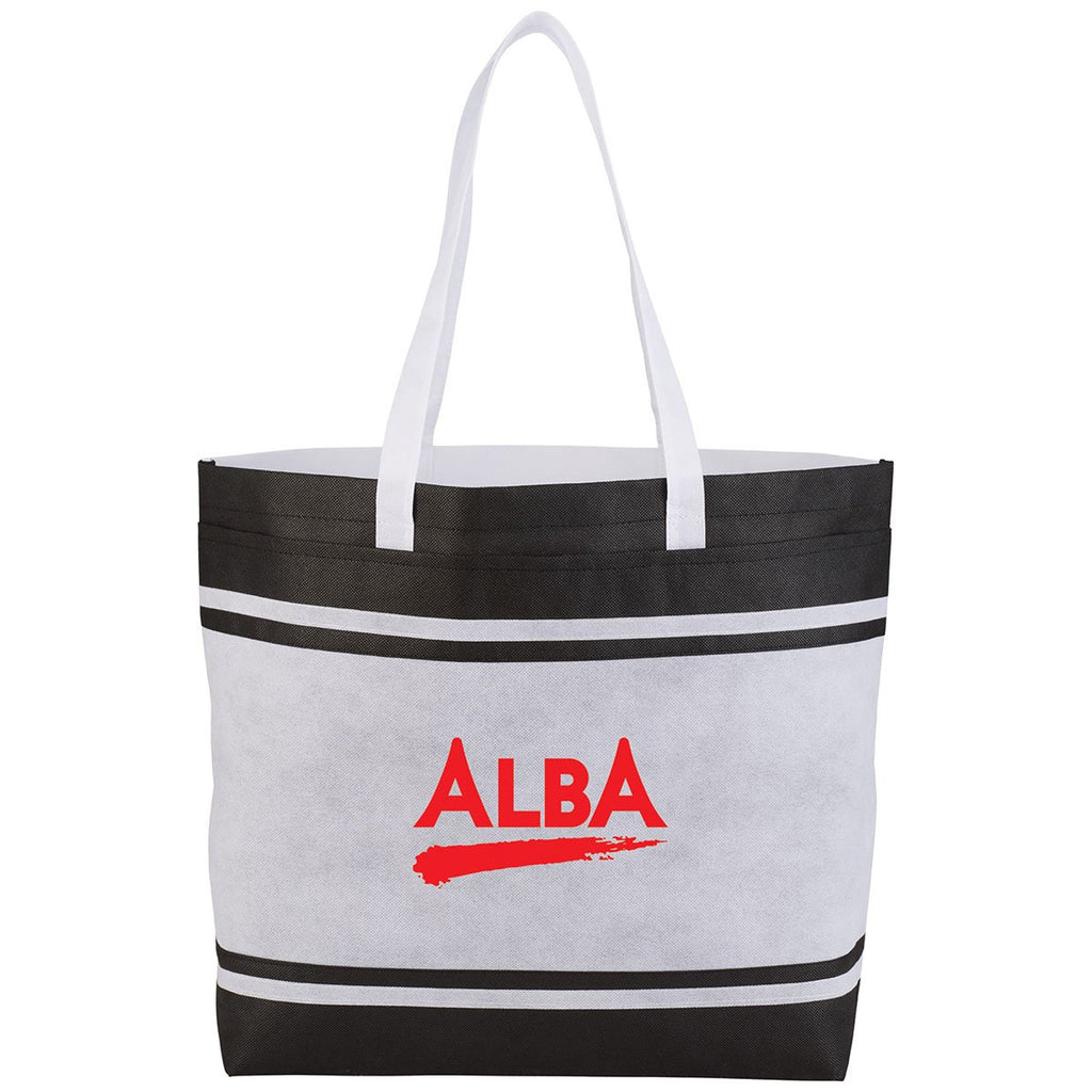 The Bullet Black Stripes Non-Woven Tote, with its striped design, is the perfect piece to help your corporate logo stand out. It can be used again and again as a grocery bag, so when you hand it out as a promotional tool at sponsored events, your company name will get plenty of exposure.The minimum order for this product is 200 pieces.