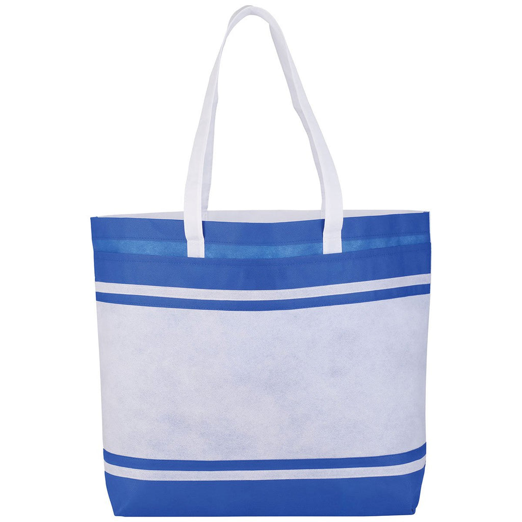 The Bullet Royal Blue Stripes Non-Woven Tote, with its striped design, is the perfect piece to help your corporate logo stand out. It can be used again and again as a grocery bag, so when you hand it out as a promotional tool at sponsored events, your company name will get plenty of exposure.The minimum order for this product is 200 pieces.