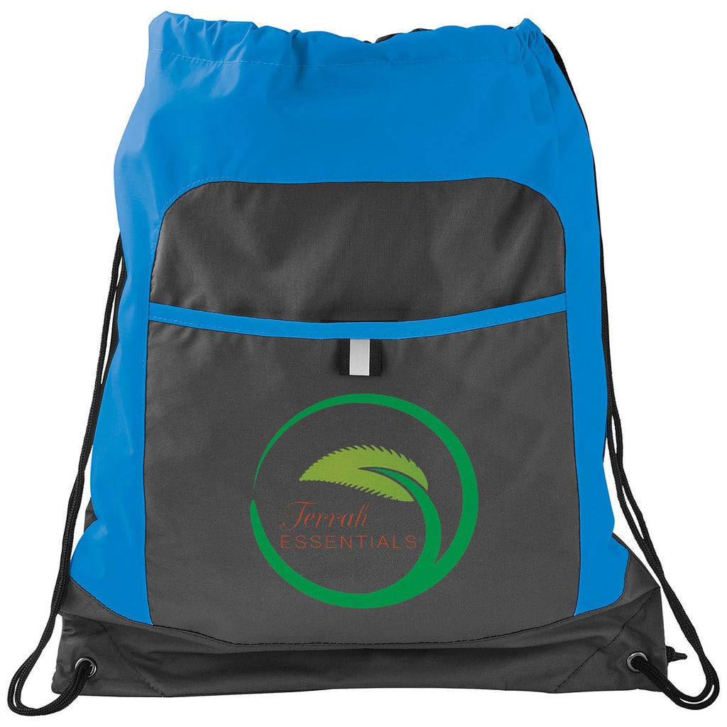 The Bullet Process Blue Grey Color Pop Drawstring Bag is designed in a way that can help your corporate logo pop, making this product a promotional tool that you can hand out at recruiting events and trade shows. This logoed bag's versatility can provide your company name with exposure in all kinds of settings.The minimum order for this product is 100 pieces.