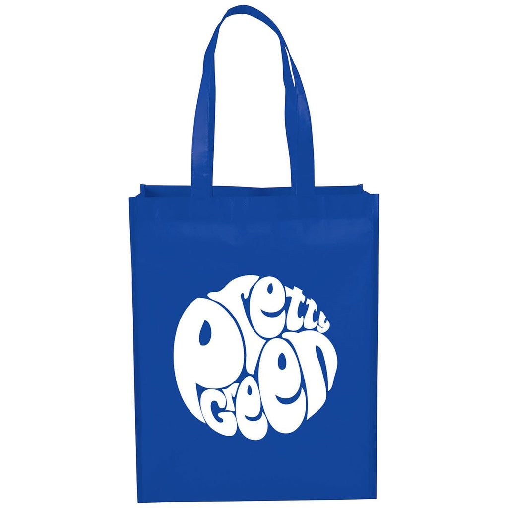 The Bullet Royal Blue Mid-Size Laminated Shopper Tote, with your corporate logo, can be a promotional tool for your company again and again when it's re-used as a grocery bag. It's ideal as a logoed giveaway item at recruiting events and trade shows, or you could order a supply for employee gifts. The minimum order for this product is 100 pieces.Highlights