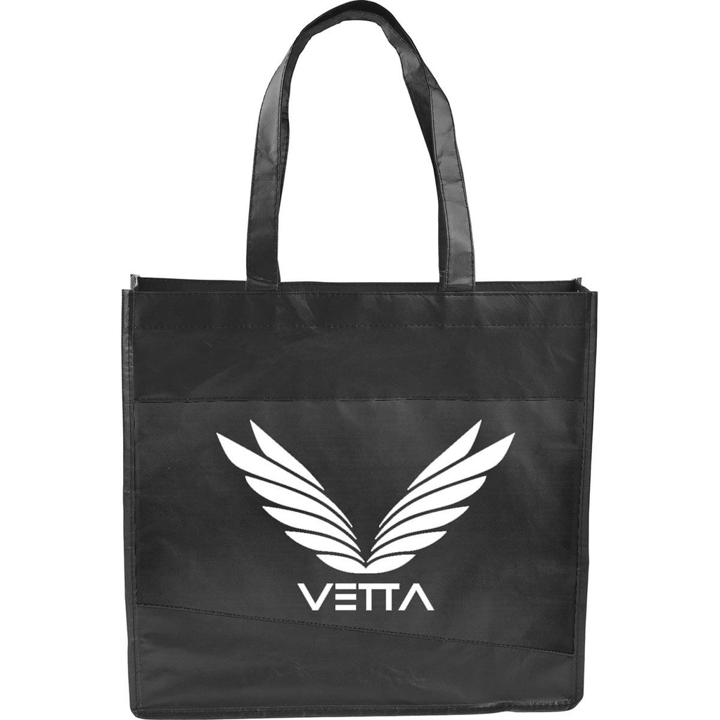 The Bullet Black Laminated Non-Woven Convention Tote provides a glossy look and a color splash that can help your corporate logo stand out. You can hand these out at recruiting events or trade shows as a promotional tool that associates your company name with style and professionalism.