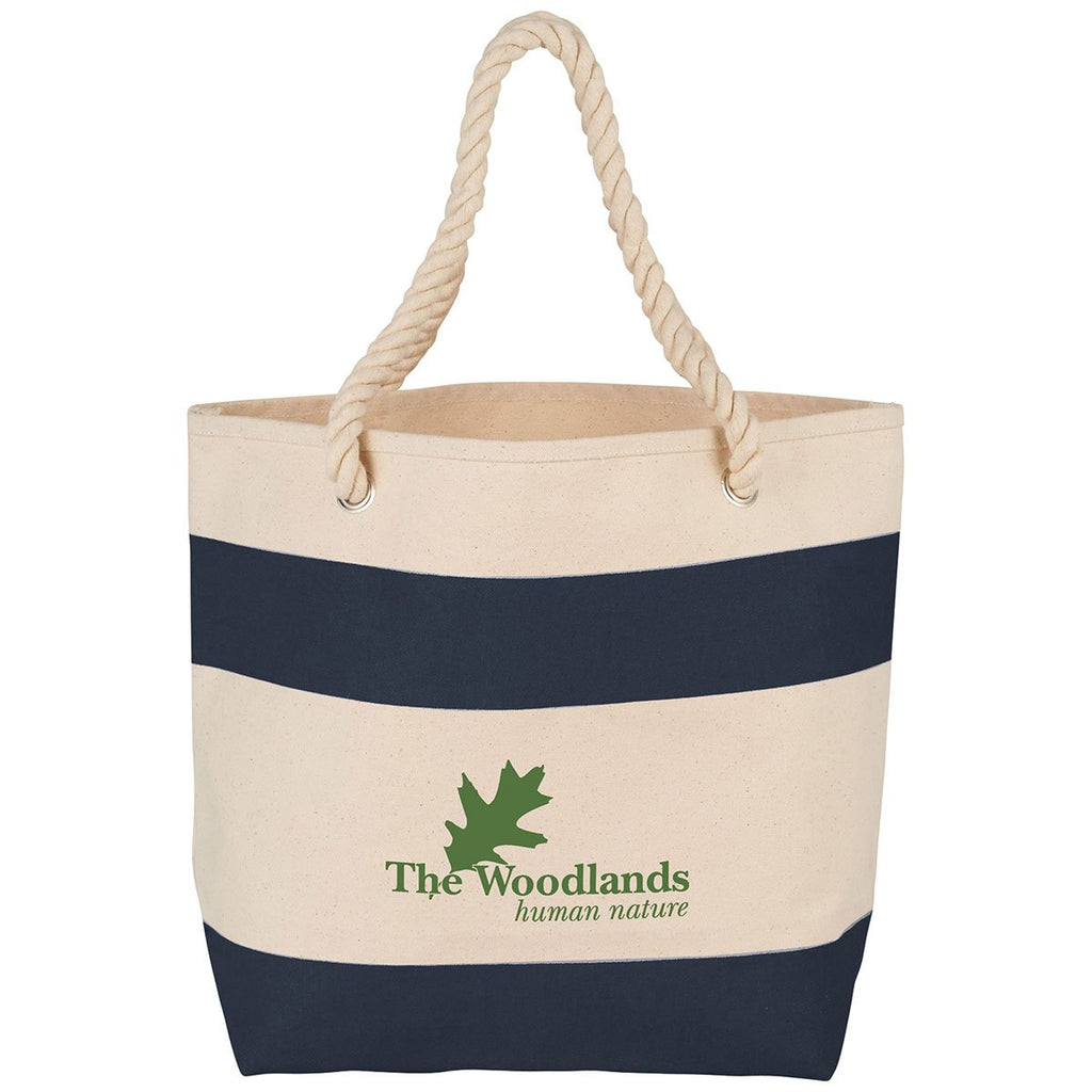 The Bullet Navy Blue Rope Handle 16oz Cotton Canvas Tote will get a second look at the supermarket, so you want to hand out a bunch with your corporate logo. With the rope handle, this bag stands apart from other re-usable grocery bags, and when in use it can be a promotional tool for your company. The minimum order for this product is 48 pieces.Highlights