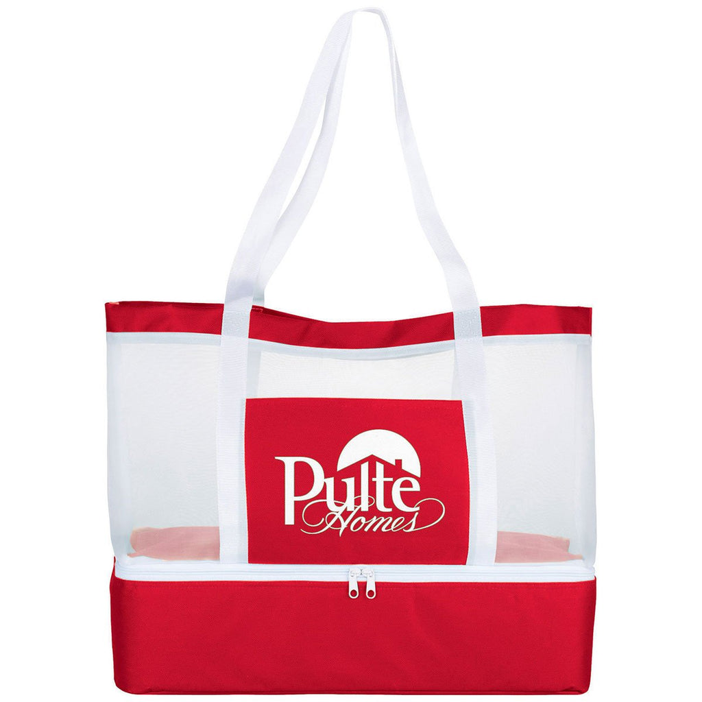 The Bullet Red Mesh Outdoor 12-Can Cooler Tote can be a sharp promotional item with your company logo standing out against the mesh background. Whether you hand it out as an employee gift or at recruiting events, this logoed bag will draw a lot of eyes to your company name. The minimum order for this product is 50 pieces.