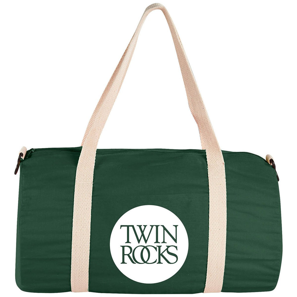 The Bullet Hunter Green Barrel 18" 5oz Cotton Canvas Duffel would be a great employee gift that your employees could use when they go to the gym. Order a bunch of these with your corporate logo as a way to encourage your companys health and fitness goals. The minimum order for this product is 48 pieces.Highlights