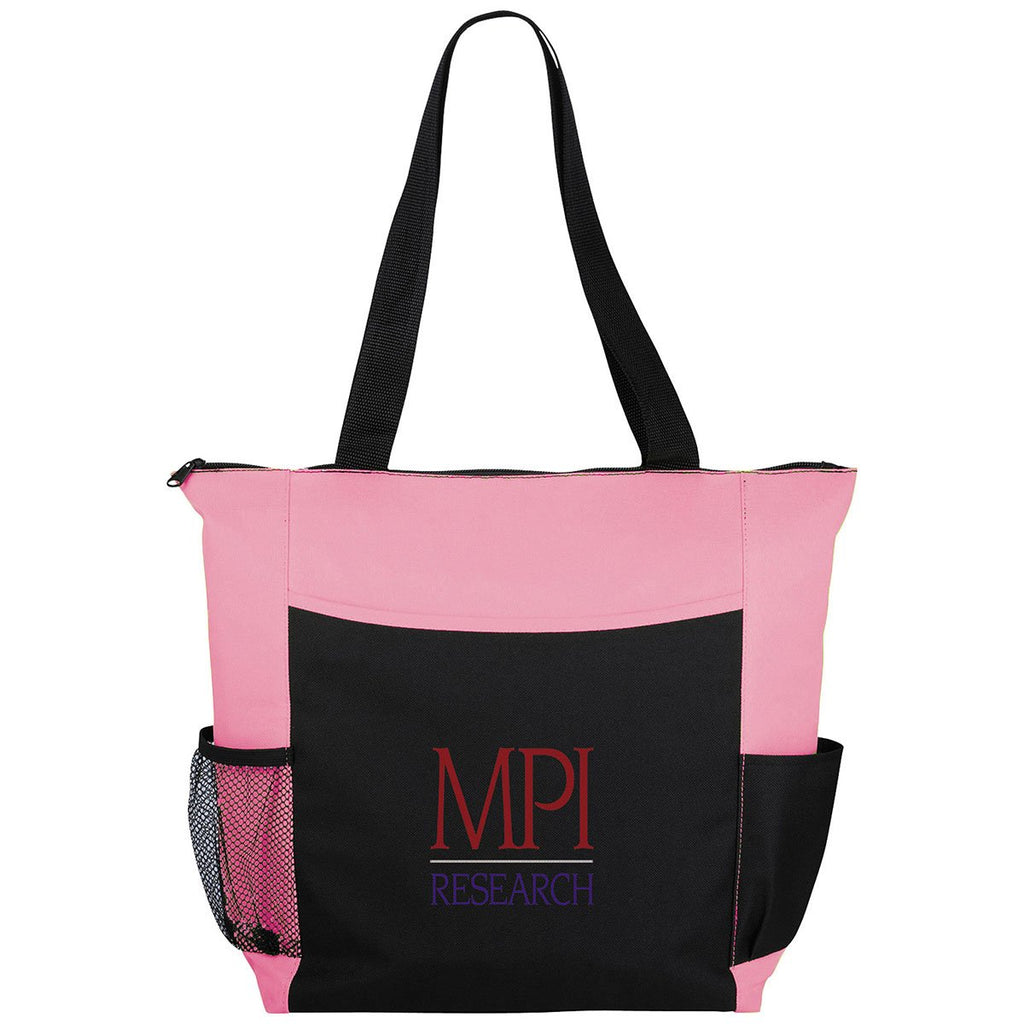 The Bullet Pink Grandview Zippered Convention Tote is an all-in-one bag that can be a handy promotional tool with your corporate logo. It can hold business cards and pens for work, and can be used and re-used for groceries. You could hand this out at sponsored events to help promote your company name.The minimum order for this product is 48 pieces.