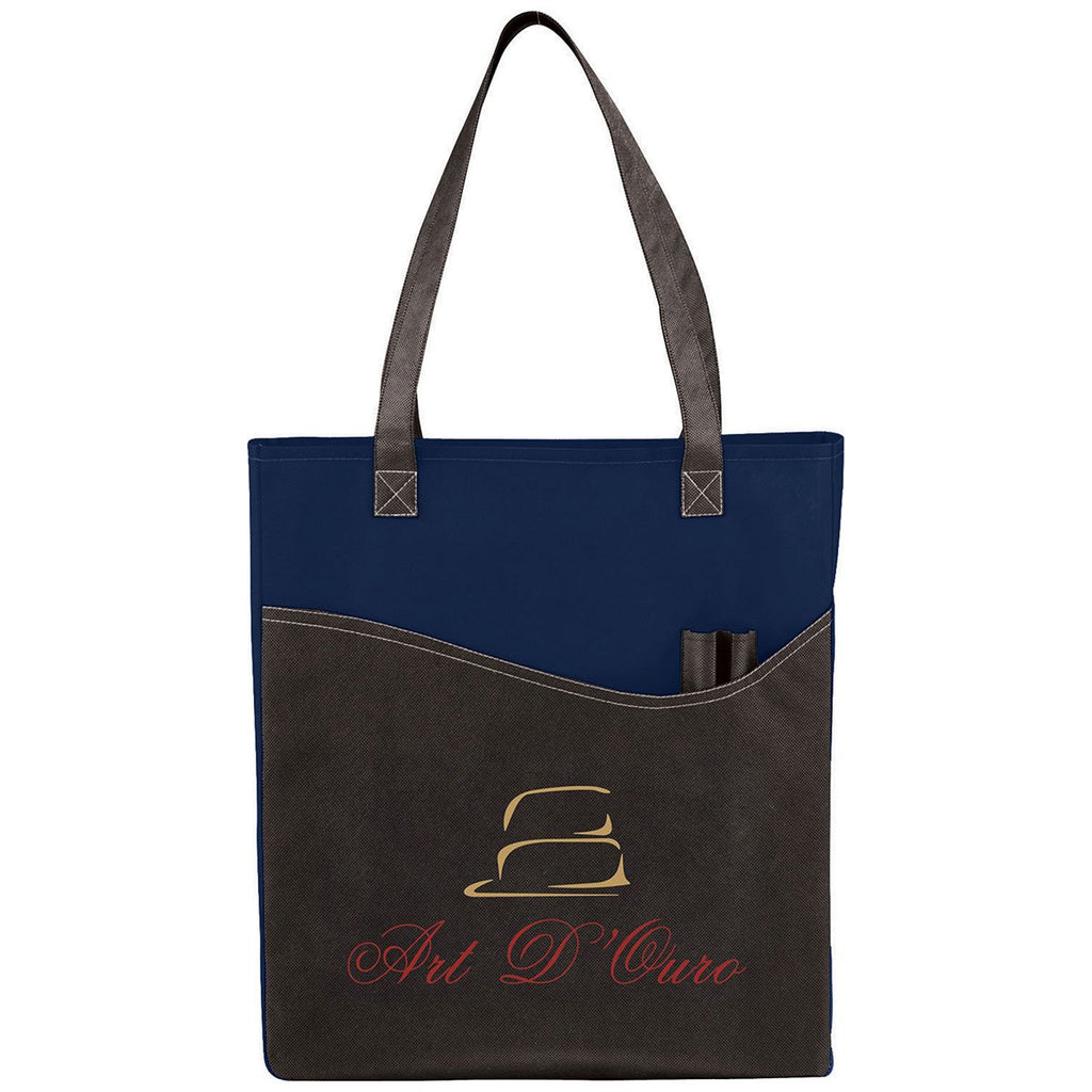 Order the Bullet Navy Blue Rivers Pocket Non-Woven Convention Tote with your corporate logo, and it's the ideal promotional item to give out at trade shows and recruiting events. The look and utility of this logoed bag will help your company make a positive impression in the office and at meetings. The minimum order for this product is 100 pieces.Highlights