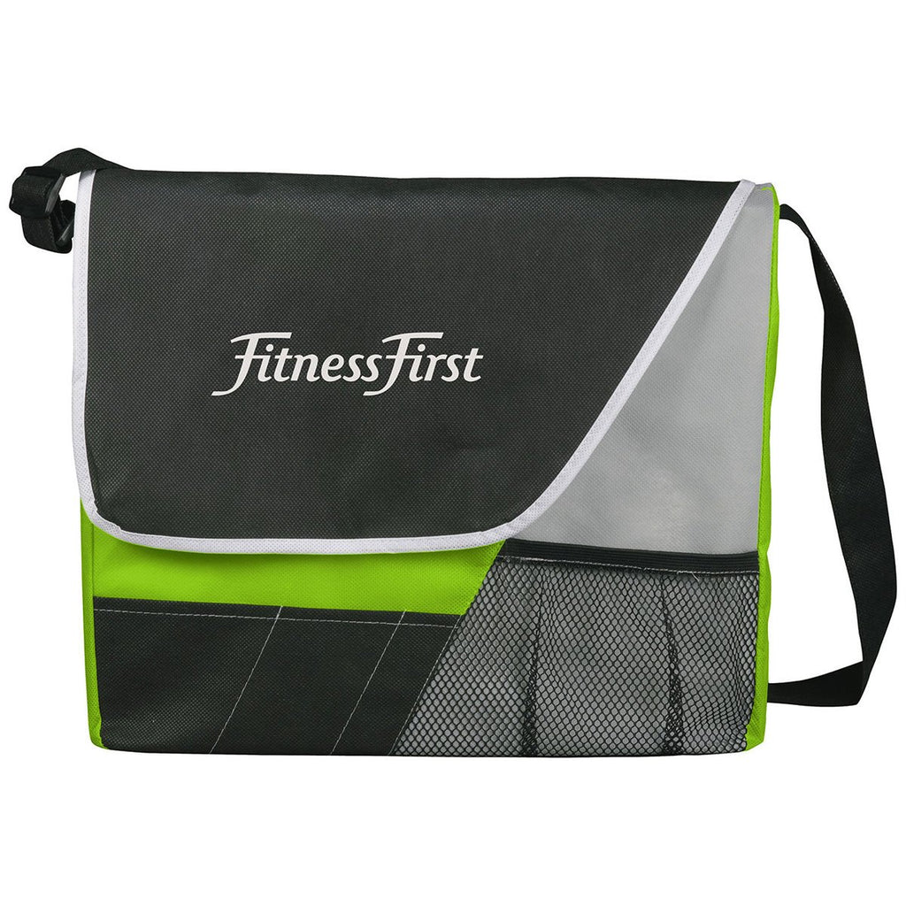 The Bullet Lime Green Rhythm Non-Woven Messenger Bag provides a modern touch. Order a supply with your corporate logo, and you can hand them out as employee gifts that work as promotional tools when your workers are conducting business. You also could give away this logoed bag at recruiting events. The minimum order for this product is 100 pieces.Highlights
