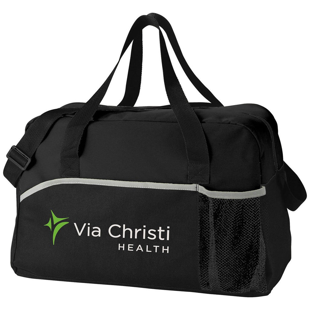 The Bullet Black Energy 17" Duffel Bag stands out among gym bags and can be an effective promotional tool when you add your corporate logo. The mesh water bottle pocket is a nice feature, which makes this logoed bag a keeper when you hand it out at trade shows and recruiting events.