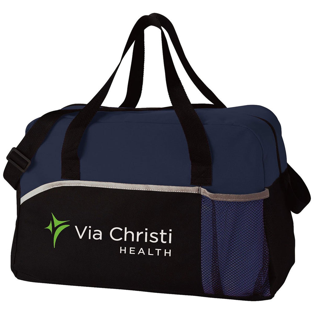 The Bullet Navy Blue Energy 17" Duffel Bag stands out among gym bags and can be an effective promotional tool when you add your corporate logo. The mesh water bottle pocket is a nice feature, which makes this logoed bag a keeper when you hand it out at trade shows and recruiting events.The minimum order for this product is 50 pieces.