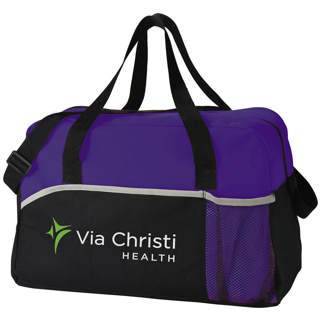 The Bullet Purple Energy 17" Duffel Bag stands out among gym bags and can be an effective promotional tool when you add your corporate logo. The mesh water bottle pocket is a nice feature, which makes this logoed bag a keeper when you hand it out at trade shows and recruiting events.The minimum order for this product is 50 pieces.