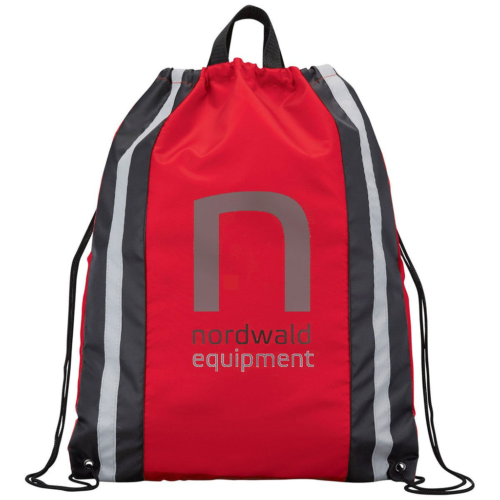 The Bullet Red Reflective Drawstring Bag will bracket your corporate logo in reflective stripes that make this a useful promotional tool for your company. You can hand this out at recruiting events and trade shows or hand out a bunch as employee gifts. The more you give, the more your company name is highlighted. The minimum order for this product is 100 pieces.Highlights