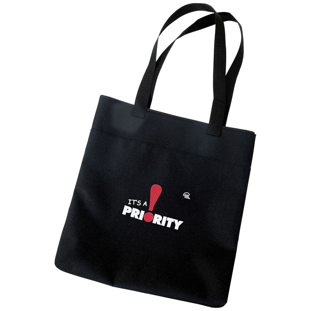 The Bullet Black Deluxe Convention Tote is a trendy way to display your corporate logo. Available in solid black or two-toned color blocking options, your logo can stand out as it decorates this piece. It would make a nice employee gift or an eye-catching promotional item at sponsored events. The minimum order for this product is 100 pieces.Highlights