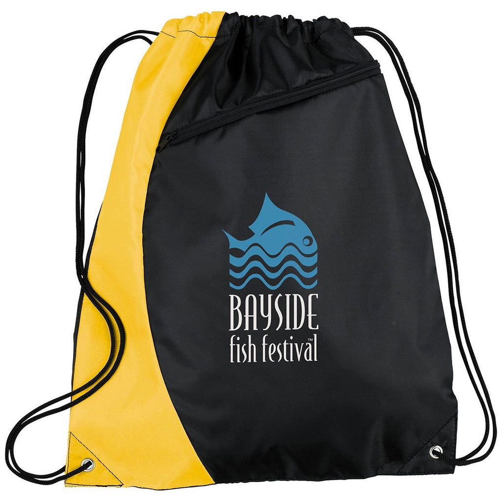 The Bullet Yellow Sonar Drawstring Bag brings a little fashion flair to the drawstring concept, which makes this a nice promotional tool when you add your corporate logo. The color stripe on the side and the angled pocket zipper can help draw the eye to your logo when you hand this out at sponsored events.The minimum order for this product is 100 pieces.