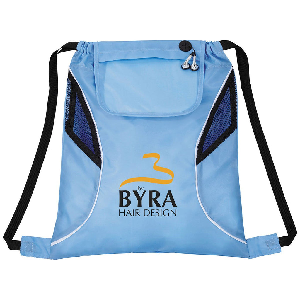 Order a supply of the Bullet Light Blue Bumblebee Deluxe Drawstring Bag with your corporate logo to hand out at your next recruiting event or career fair. It features an extra pocket for media devices and an earbud port. When prospective employees get this logoed bag, they'll remember your company name. The minimum order for this product is 100 pieces.Highlights