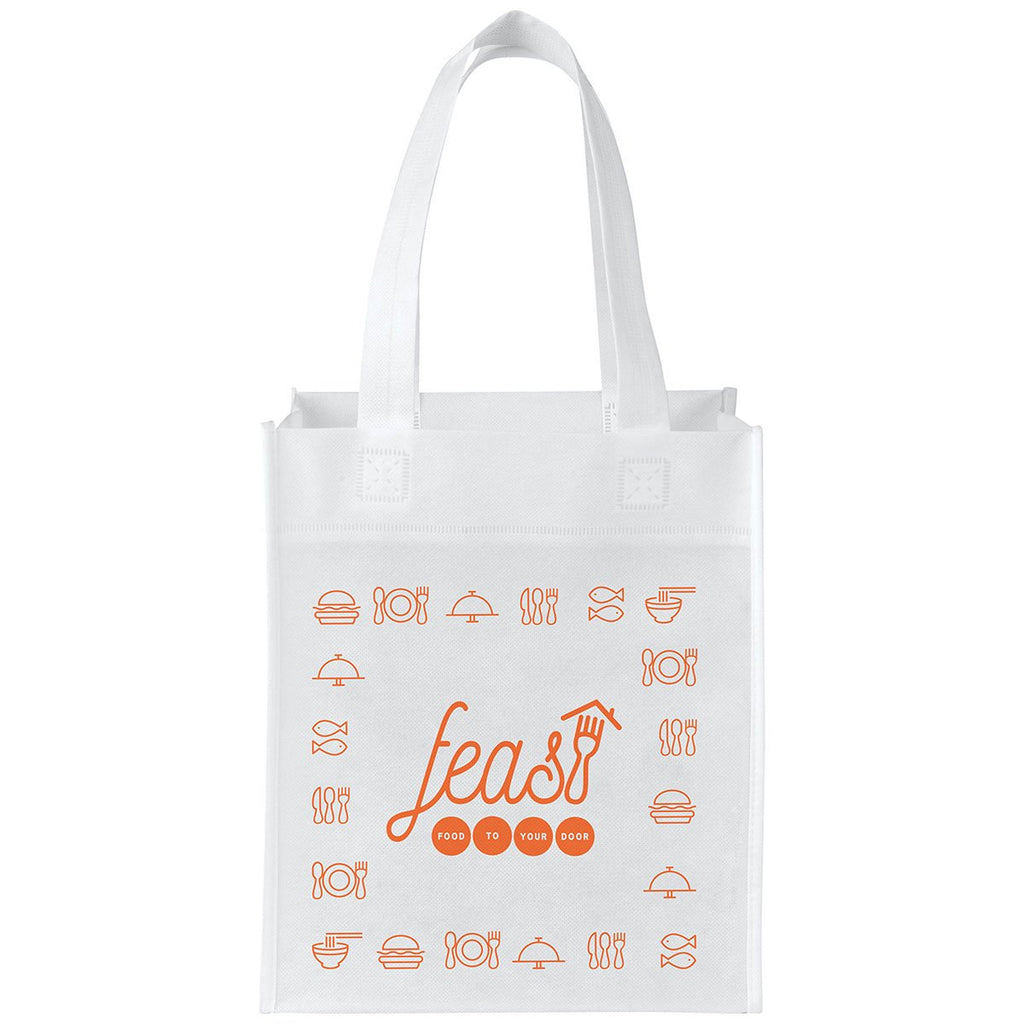 The Bullet White Basic Grocery Tote would be a great giveaway item, and with your corporate logo it can be a multipurpose promotional tool. You could hand these out as employee gifts, and your workers would be taking your company name to the market over and over in this re-usable logoed bag. The minimum order for this product is 500 pieces.Highlights