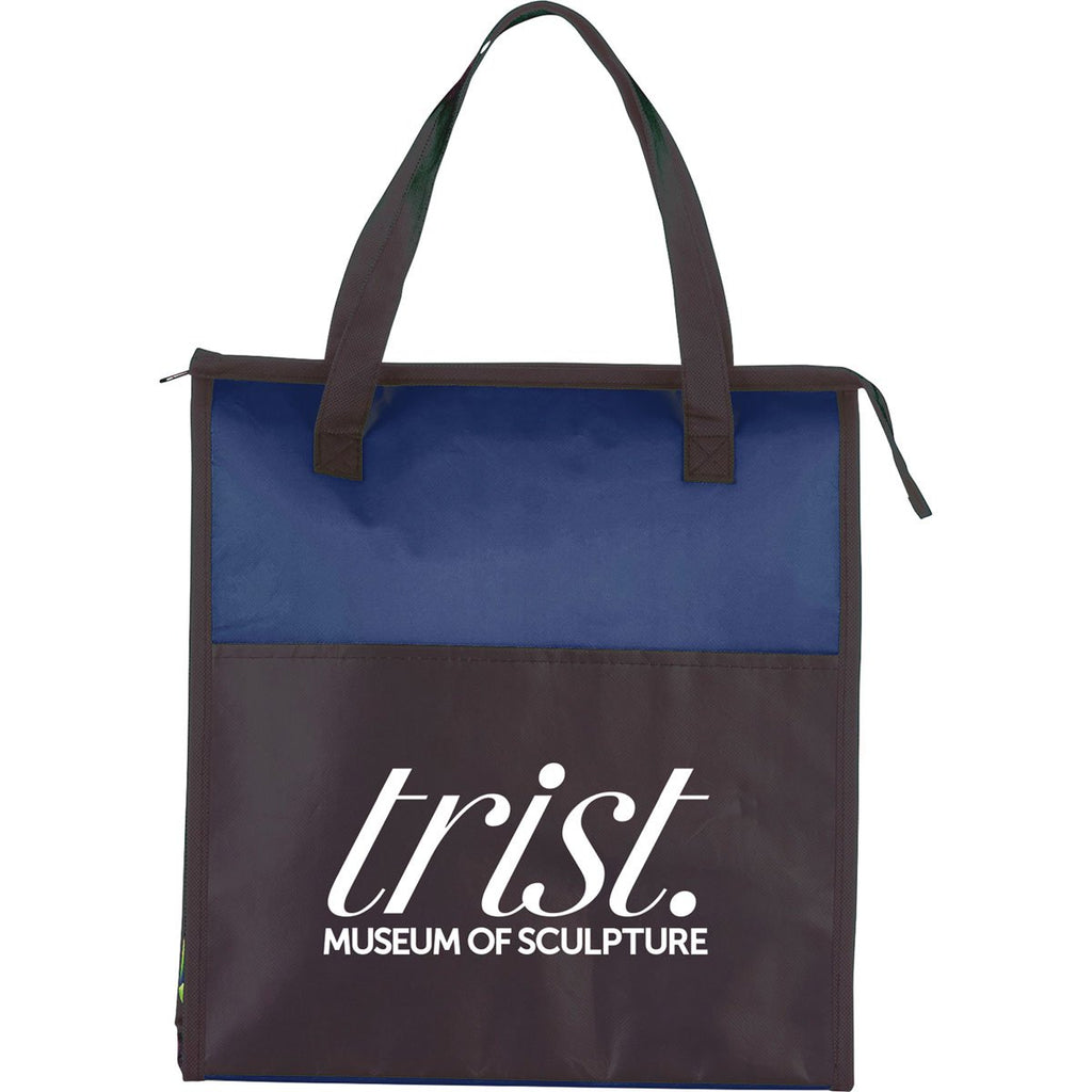 The Bullet Navy Blue Matte Laminated Insulated Tote would make a nice employee gift and you also could add it to a welcome package for new hires. The color-blocking design can help your corporate logo stand out, and this piece can be a promotional tool when you hand it out at recruiting events and trade shows. The minimum order for this product is 100 pieces.Highlights