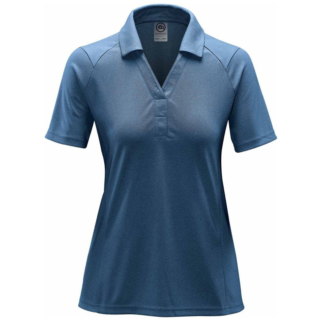 Enjoy all your outdoor activities in a custom logo Stormtech Women's Ocean Mistral Heathered Polo in five beautiful colors. The double pique heathered polo offers an open v-neck with a combination shoulder allows for freedom of movement whether playing a round of golf or headed to the company outing. Add a corporate logo to these polos with buttonless placket to use as employee apparel or highly admirable corporate gifts. The H2X-DRY technology wicks away moisture as you enjoy your choice of activity at the next company outing. Place your order today in your choice of colors and the custom logo of your choosing.Corresponding Men's Style: Stormtech Men's Ocean Mistral Heathered Polo