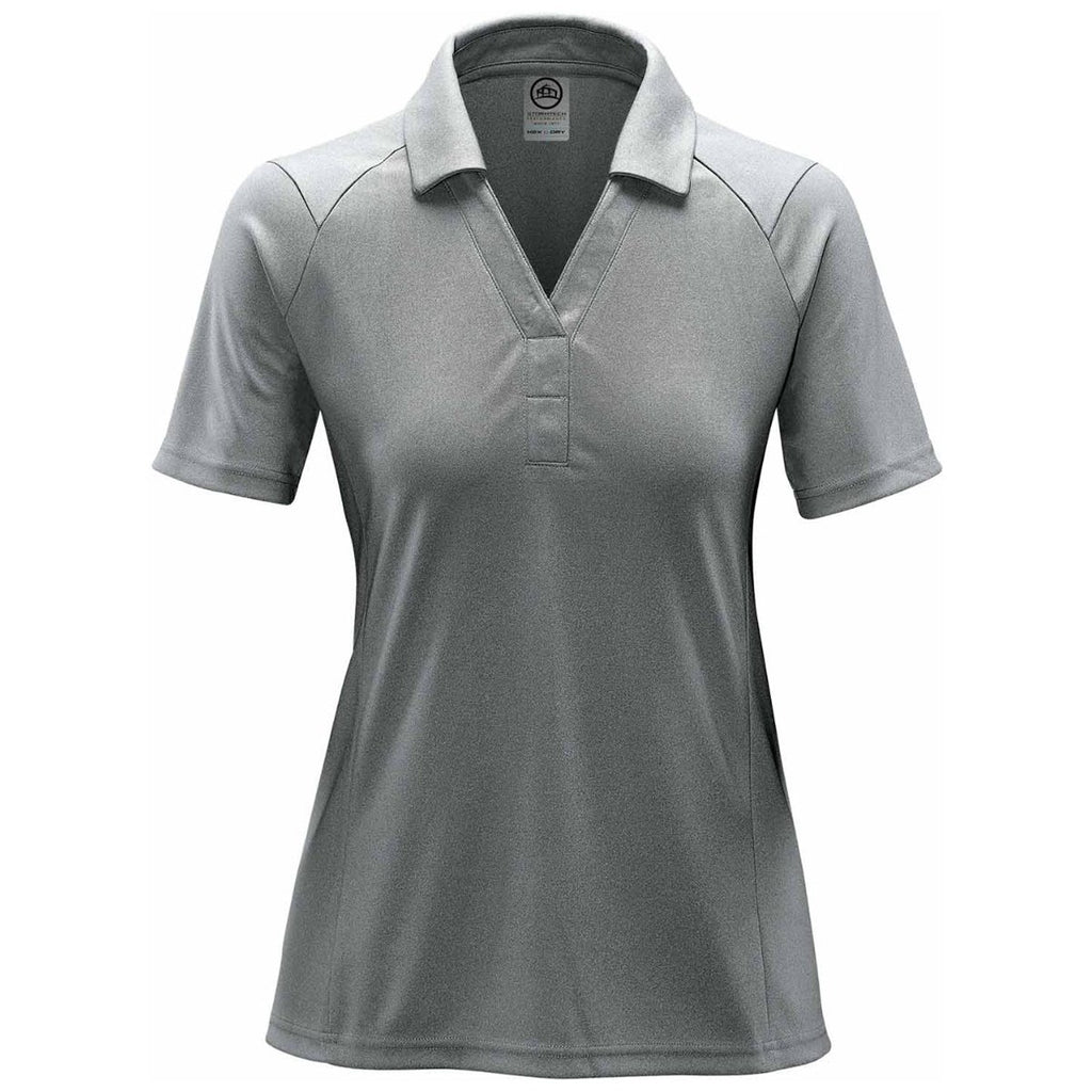 Enjoy all your outdoor activities in a custom logo Stormtech Women's Titanium Mistral Heathered Polo in five beautiful colors. The double pique heathered polo offers an open v-neck with a combination shoulder allows for freedom of movement whether playing a round of golf or headed to the company outing. Add a corporate logo to these polos with buttonless placket to use as employee apparel or highly admirable corporate gifts. The H2X-DRY technology wicks away moisture as you enjoy your choice of activity at the next company outing. Place your order today in your choice of colors and the custom logo of your choosing.Corresponding Men's Style: Stormtech Men's Titanium Mistral Heathered Polo