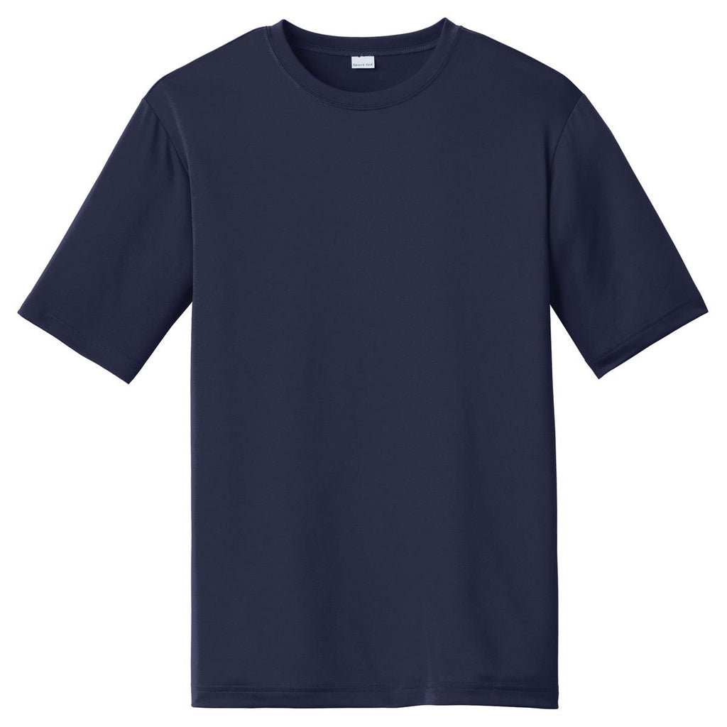 Do moisture laden t-shirts bog you down whenever you need to ramp up the competitive juices? Sport-Tek Men's True Navy PosiCharge Tough Tee contain moisture wicking technology that quickly evaporates perspiration the instant it forms on your skin. The result is a cooling of the skin that invigorates your body. Set-in sleeves allow for more arm movement, which comes in handy on the golf course and tennis court. The super soft fabric endures countless wash and dry cycles, without any of the colors fading. One-hundred percent rugged polyester interlock resists rips and tears. Attach your company logo to the t-shirts to spread the word about your brand.Corresponding Women's Style: Sport-Tek Women's True Navy PosiCharge Tough Tee