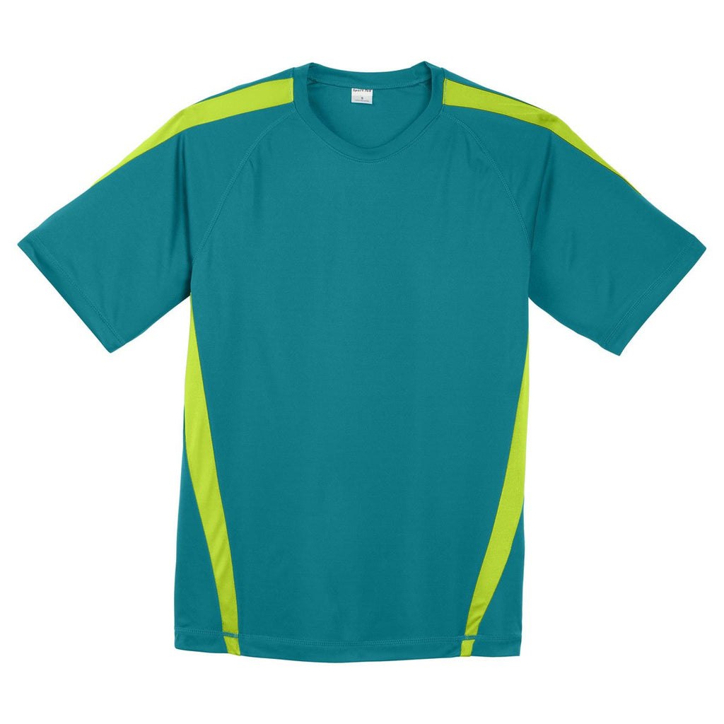 Sport-Tek Men's Tropic Blue/Lime Shock Colorblock PosiCharge Competitor Tee