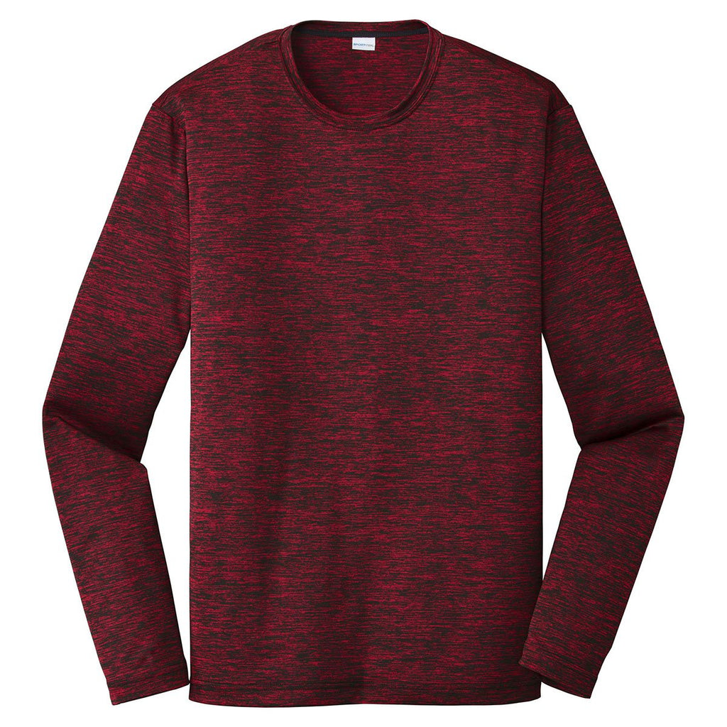 Sport-Tek Men's Deep Red-Black Electric PosiCharge Long Sleeve Electric Heather Tee