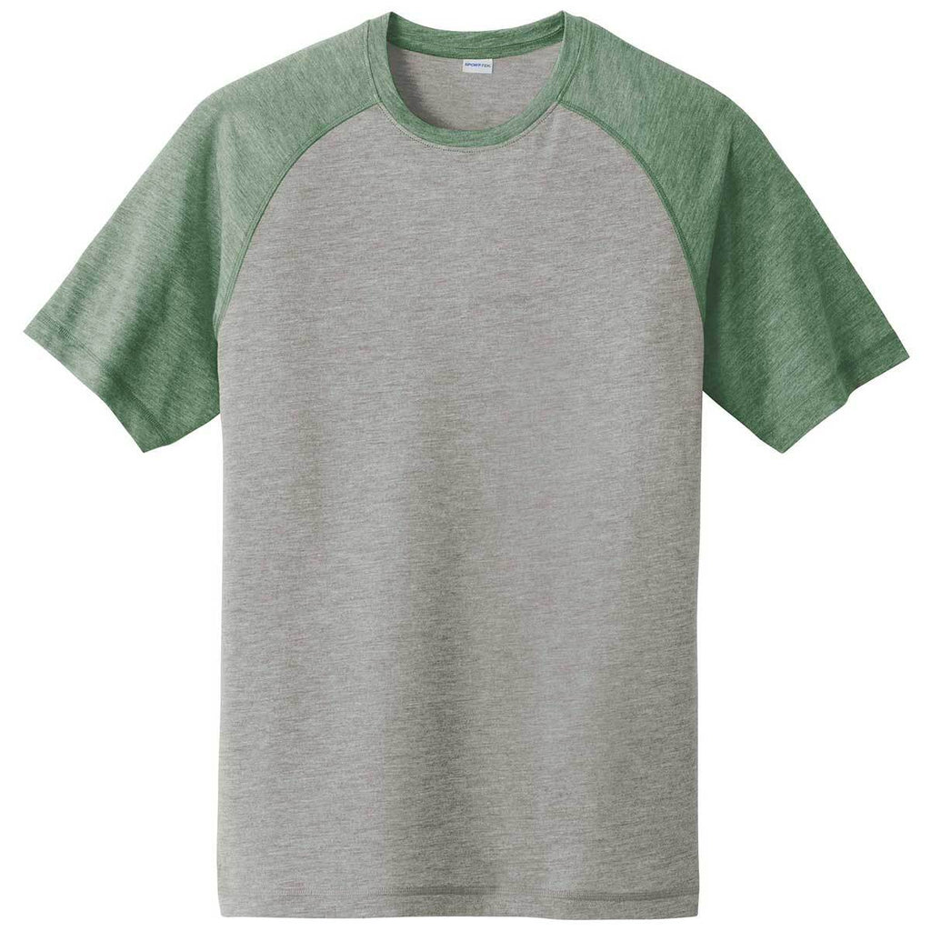 Sport-Tek Men's Forest Green Heather/Light Grey Heather PosiCharge Tri-Blend Wicking Raglan Tee