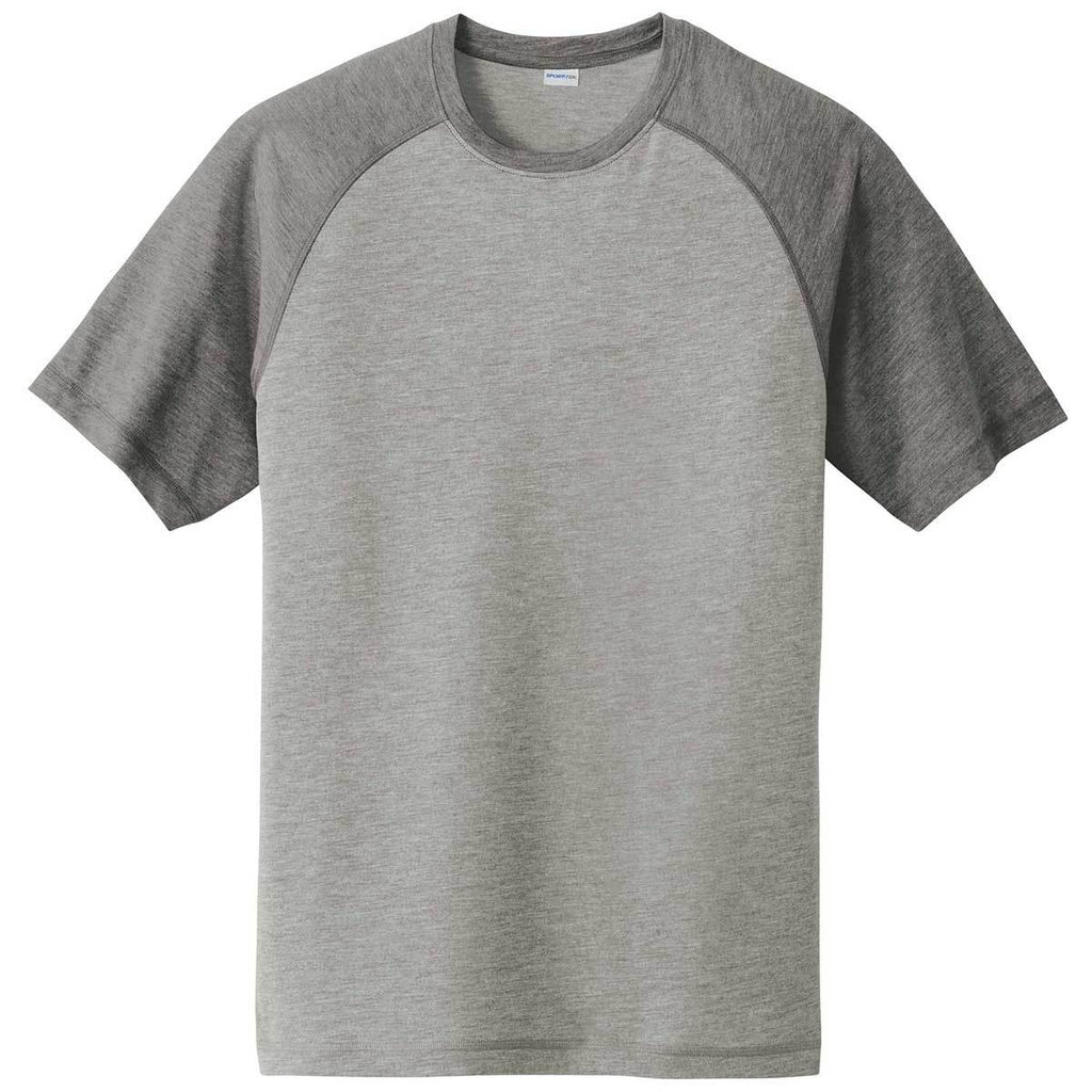 Sport-Tek Men's Dark Grey Heather/Light Grey Heather PosiCharge Tri-Blend Wicking Raglan Tee