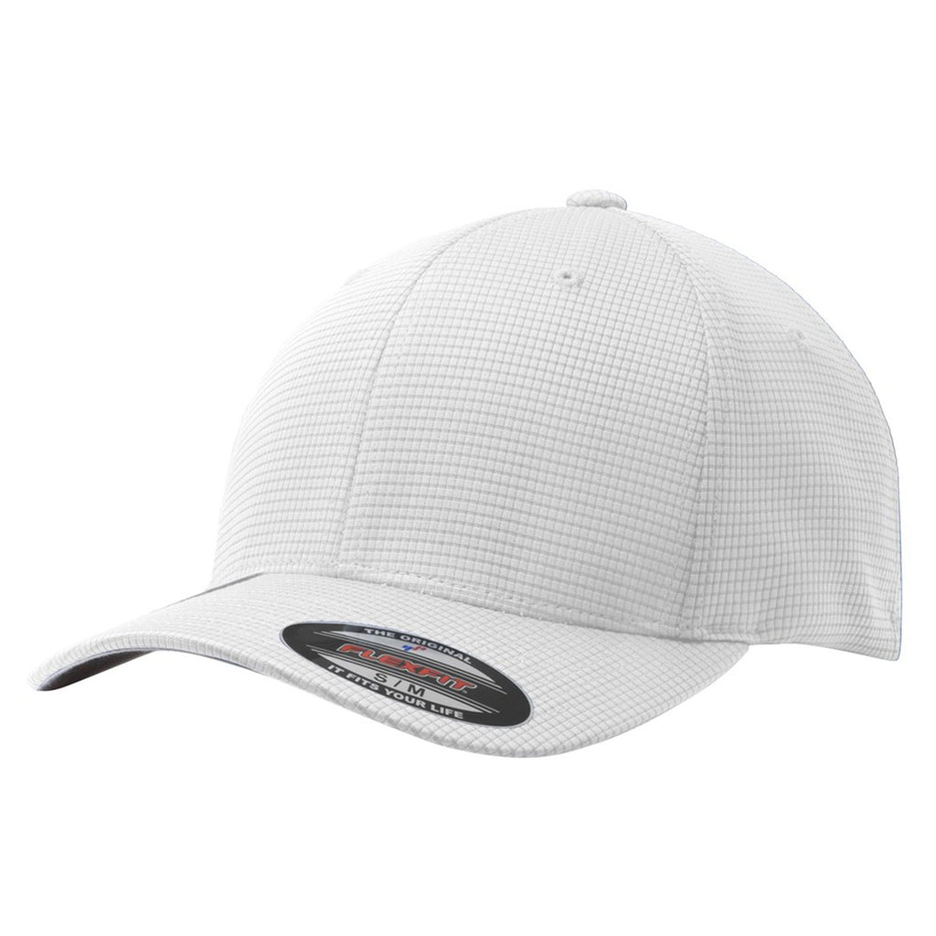 Take me out to the ball game has taken on a new meaning when you put on the embroidered Sport-Tek White Flexfit Grid Texture Cap. The sleek, versatile cap works as fashionably well on a softball field as it does at home when you kick back and relax on a warm summer day. The grid texture puts a new spin on this classic style. One-hundred percent polyester endures the punishment inflicted on it by frequent use. Moisture wicking technology quickly removes perspiration to cool your neck and head. Add a custom logo on the large imprint area to reach more potential customers at the next business seminar.Highlights