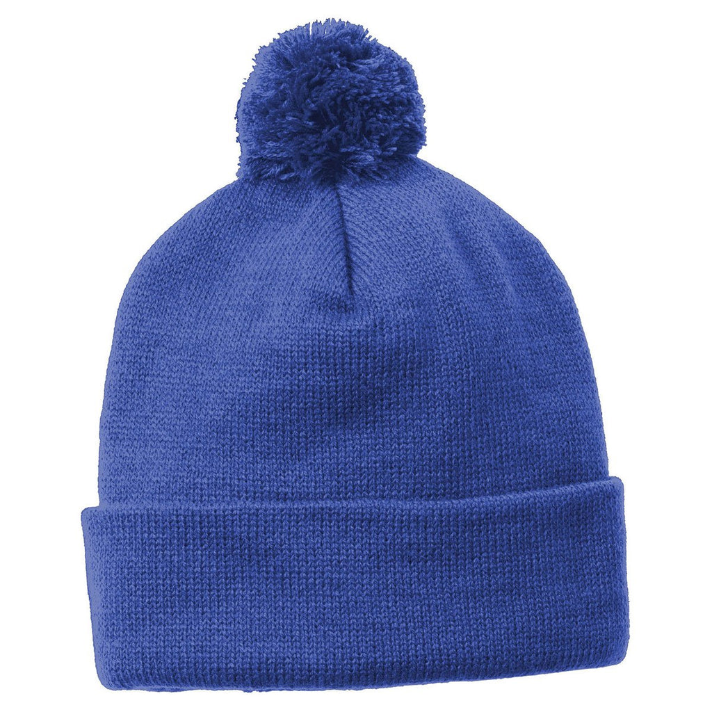 Sport-Tek True Royal Solid Pom Pom Beanie