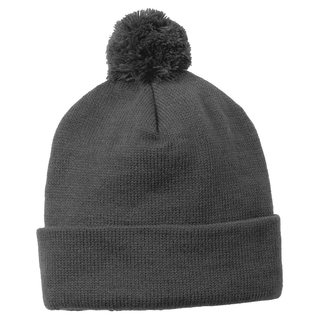 Sport-Tek Iron Grey Solid Pom Pom Beanie