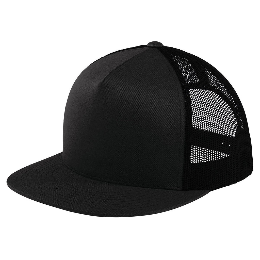 Sport-Tek Black/Black Yupoong 5-Panel Classic Trucker Mesh Back Cap