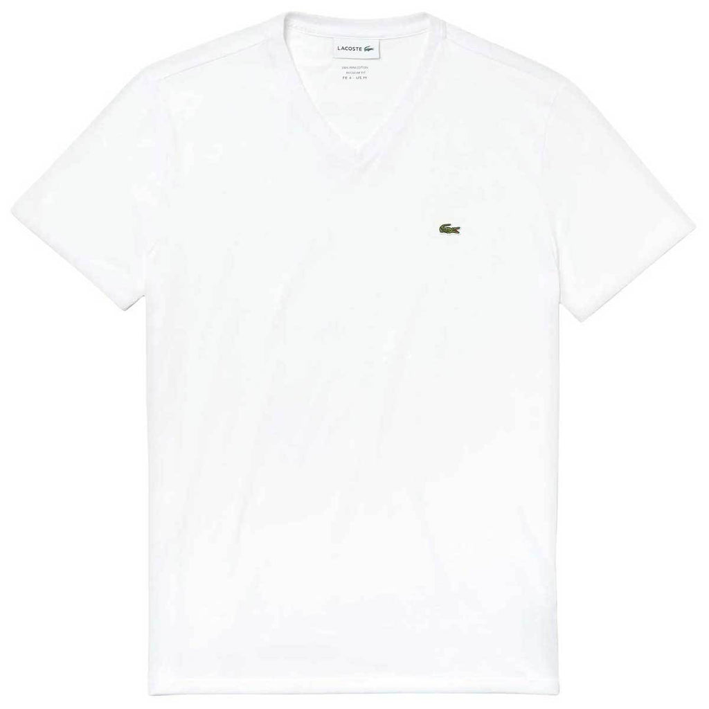 Lacoste Men's White Short Sleeve Pima Cotton Jersey V-Neck T-Shirt