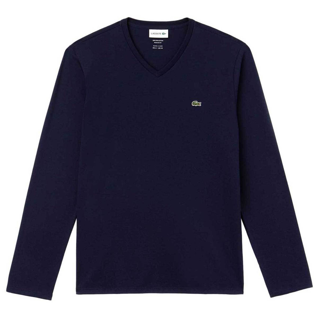 Lacoste Men's Navy Blue Long Sleeve Pima Cotton Jersey V-Neck T-Shirt