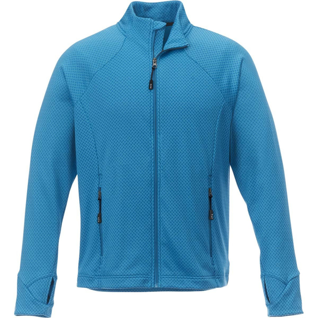 With a distinctive textured jersey knit, the custom logoed Elevate Men's Aspen Blue Kirkwood Knit Jacket stands out in a crowded field of jackets. Take advantage of the sleek appearance of the versatile jacket by attaching your company logo on the embroidered area. Articulated elbows and ergonomic sleeves make the jacket perfect for wearing when you work on home improvement projects. Highly durable 100% polyester fabric resists rips and tears to deliver superior fashion performance for years to come. The tapered waist produces a flattering fit for any occasion. Mesh jersey knit pocket bags conveniently store handheld electronic devices.